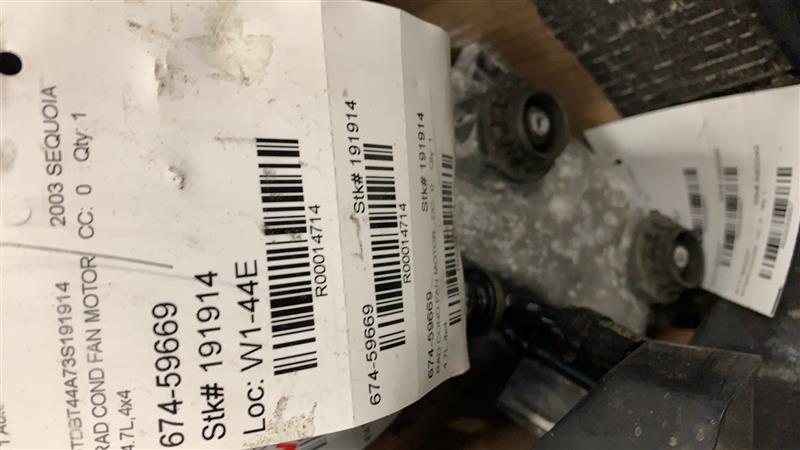 Source Vehicle Color: SILVER Conditions/Options:4.7L,4x4 Interchange Part Number:674-59669 Hollander Interchange found this part as interchangeable with: SEQUOIA 01-04 Fan Assembly; (condenser)