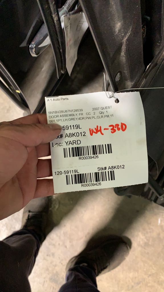 $288.00 Stock#A8K012 Inventory #: R39426 Loc:W4.40D VIN: 5N1BV28U87N128539 Milage: 139275 Source Vehicle Color: GREY Conditions/Options:001,1P1,LH,GREYTEST