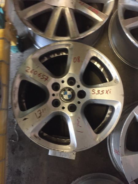 Source Vehicle Color: BLUE Interchange Part Number:560-71198 Hollander Interchange found this part as interchangeable with: BMW 525i 06-07 17x7-1/2 (alloy), 5 spoke, i (RWD, 20mm offset), w/o hole in spoke; BMW 528i 08-10 17x7-1/2 (alloy), 5 spoke, i (RWD, 20mm offset), w/o hole in spoke; BMW 530i 06-07 17x7-1/2 (alloy), 5 spoke, i (RWD, 20mm offset), w/o hole in spoke; BMW 535i 08-10 Sdn, 17x7-1/2 (alloy), 5 spoke, i (RWD, 20mm offset), w/o hole in spoke; BMW 535i 08-10 SW, 17x7-1/2 (alloy), 5 spoke, i (RWD, 20mm offset), w/o hole in spoke; BMW 550i 06-10 17x7-1/2 (alloy), 5 spoke, w/o hole in spoke
