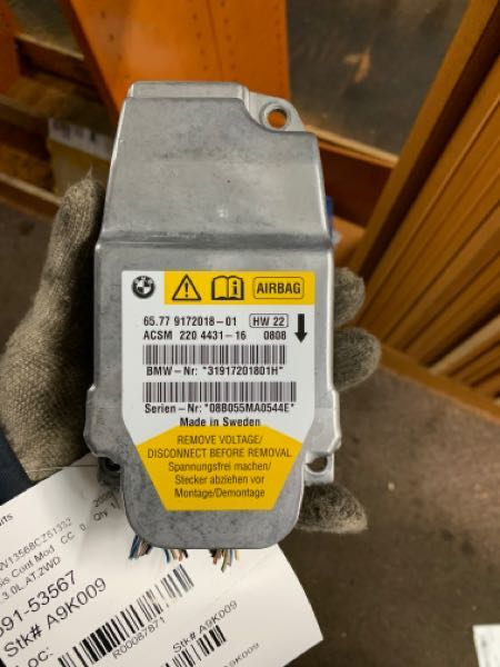 Source Vehicle Color: BLUE Conditions/Options:ID:65779145400 Interchange Part Number:591-53567 Hollander Interchange found this part as interchangeable with: BMW 525i 06 Air Bag; (center console), (main control), from 9/05; BMW 525i 07 Air Bag; (center console), (main control); BMW 528i 08-10 Air Bag; (center console), (main control); BMW 530i 06 Air Bag; (center console), (main control), from 9/05; BMW 530i 07 Air Bag; (center console), (main control); BMW 535i 08-10 Air Bag; (center console), (main control); BMW 550i 06-10 Air Bag; (center console), (main control); BMW 650i 06-10 Air Bag; (center console), (main control), Cpe; BMW M5 06-10 Air Bag; (center console), (main control); BMW M6 06 Air Bag; (center console), (main control); BMW M6 07-10 Air Bag; (center console), (main control), Cpe; BMW Z4 06-08 Air Bag; (front, main control)