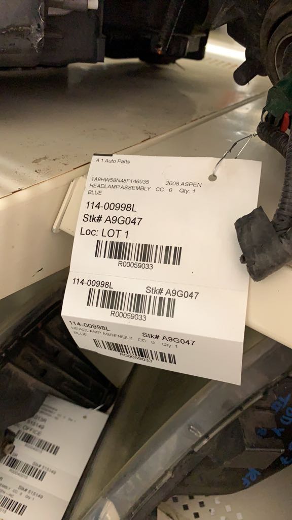$150.00 Stock#A9G047 Inventory #: R59033 Loc:W1A.GG.1C VIN: 1A8HW58N48F146935 Milage: 162237 Source Vehicle Color: BLUE Conditions/Options:BLUE Interchange Part Number:114-00998L Hollander Interchange found this part as interchangeable with: ASPEN 07-09 L.