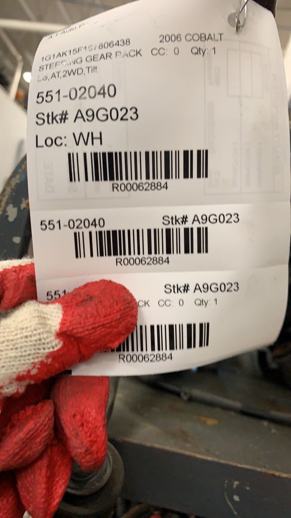 $100.00 Stock#A9G023 Inventory #: R62884 Loc:W1.RK.4A VIN: 1G1AK15F167806438 Milage: 92000 Source Vehicle Color: BLUE Conditions/Options:LS,AT,2WD,Tilt Interchange Part Number:551-02040 Hollander Interchange found this part as interchangeable with: COBALT 05-09 Power Rack and Pinion; soft ride suspension system (opt FE1); COBALT 10 Power Rack and Pinion; exc. SS; w/o Sport package; G5 07-10 Power Rack and Pinion; soft ride suspension system (opt FE1); ION 03-07 Power Rack and Pinion; ; PURSUIT 05-06 Power Rack and Pinion; soft ride suspension system (opt FE1)