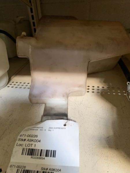 $50.00 Stock#A9K004 Inventory #: R68694 Loc:W4.DD.10D VIN: 1GCEG15X231222115 Milage: 125658 Source Vehicle Color: WHITE Interchange Part Number:671-00226 Hollander Interchange found this part as interchangeable with: EXPRESS 1500 VAN 03-14; EXPRESS 2500 VAN 03-05; EXPRESS 2500 VAN 06-16 gasoline; EXPRESS 2500 VAN 11-16 CNG; EXPRESS 2500 VAN 17 4.8L; EXPRESS 2500 VAN 17-20 6.0L; EXPRESS 2500 VAN 18-21 4.3L; EXPRESS 2500 VAN 21 6.6L; EXPRESS 3500 VAN 03 Cutaway; EXPRESS 3500 VAN 03 exc. Cutaway; w/o coolant cap with tether; EXPRESS 3500 VAN 04-05; EXPRESS 3500 VAN 06-16 gasoline; EXPRESS 3500 VAN 11-16 CNG; EXPRESS 3500 VAN 11-16 LPG; EXPRESS 3500 VAN 17 4.8L; EXPRESS 3500 VAN 17-20 6.0L; EXPRESS 3500 VAN 18-21 4.3L; EXPRESS 3500 VAN 21 6.6L; SAVANA 1500 VAN 03-14; SAVANA 2500 VAN 03-05; SAVANA 2500 VAN 06-16 gasoline; SAVANA 2500 VAN 11-16 CNG; SAVANA 2500 VAN 17 4.8L; SAVANA 2500 VAN 17-19 6.0L; SAVANA 2500 VAN 18-19 4.3L; SAVANA 3500 VAN 03 Cutaway; SAVANA 3500 VAN 03 exc. Cutaway; w/o coolant cap with tether; SAVANA 3500 VAN 04-05; SAVANA 3500 VAN 06-16 gasoline; SAVANA 3500 VAN 11-16 CNG; SAVANA 3500 VAN 11-16 LPG; SAVANA 3500 VAN 17 4.8L; SAVANA 3500 VAN 17-19 6.0L; SAVANA 3500 VAN 18-19 4.3L