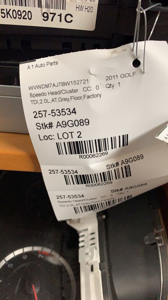 GOLF 11 Cluster; (cluster), exc. City; SW, w/multifunction display, opt 9Q5, MPH, 2.5L