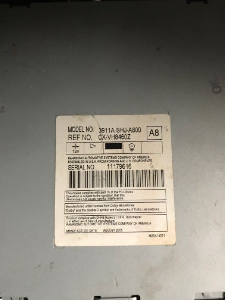Source Vehicle Color: SILVER Conditions/Options:3911A-SHJ-A800 Interchange Part Number:594-00349 Hollander Interchange found this part as interchangeable with: ODYSSEY 05-10 player, rear entertainment system