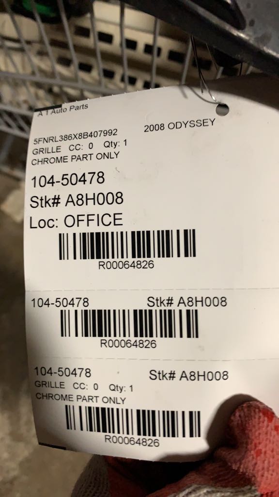 $75.00 Stock#A8H008 Inventory #: R64826 Loc:W2.13B VIN: 5FNRL386X8B407992 Milage: 158152 Source Vehicle Color: GOLD Conditions/Options:CHROME PART ONLY Interchange Part Number:104-50478 Hollander Interchange found this part as interchangeable with: ODYSSEY 08-10