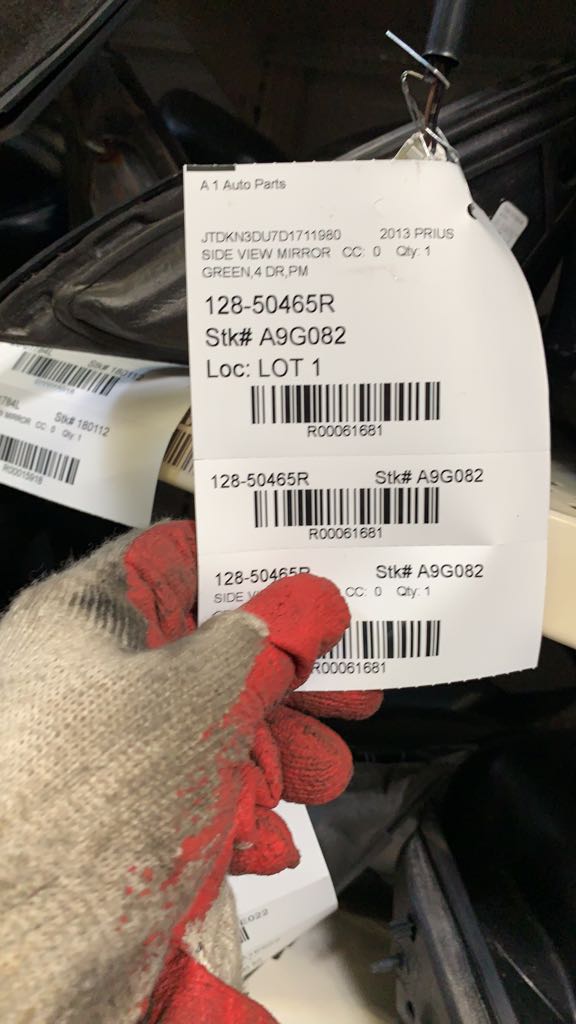 Source Vehicle Color: GREEN Interchange Part Number:128-50465R Hollander Interchange found this part as interchangeable with: PRIUS 10-11 Power; R.; PRIUS 12-15 Power; Prius (VIN DU, 7th and 8th digit), (heated), R.; PRIUS 12-15 Power; Prius Plug-in (VIN DP, 7th and 8th digit), (heated), R.
