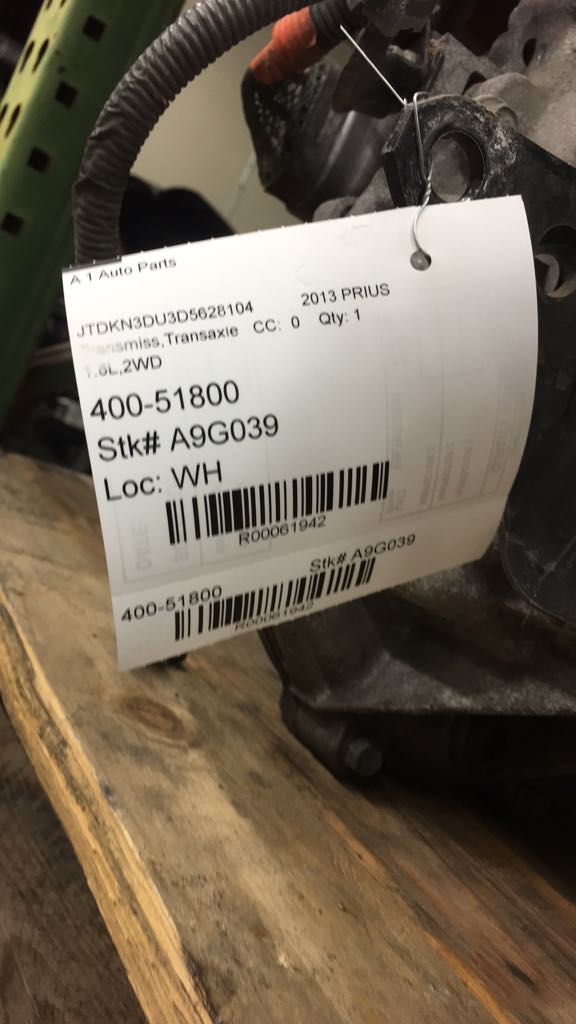 Source Vehicle Color: GREEN Conditions/Options:1.8L,2WD,Floor Interchange Part Number:400-51800 Hollander Interchange found this part as interchangeable with: LEXUS CT200H 11-17 AT; ; PRIUS 10-11 AT; (CVT); PRIUS 12-15 AT; Prius (VIN DU, 7th and 8th digit); PRIUS 12-15 AT; Prius Plug-in (VIN DP, 7th and 8th digit)