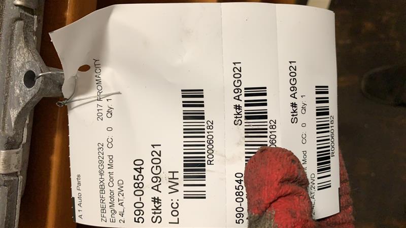$100.00 Stock#A9G021 Inventory #: R60182 Loc:W1A.BB.4F VIN: ZFBERFBBXH6G92232 Milage: 42000 Source Vehicle Color: WHITE Conditions/Options:2.4L,AT,2WD Interchange Part Number:590-08540 Hollander Interchange found this part as interchangeable with: PROMASTER CITY 16 Electronic Control Module; (2.4L); PROMASTER CITY 17 Electronic Control Module, (2.4L)