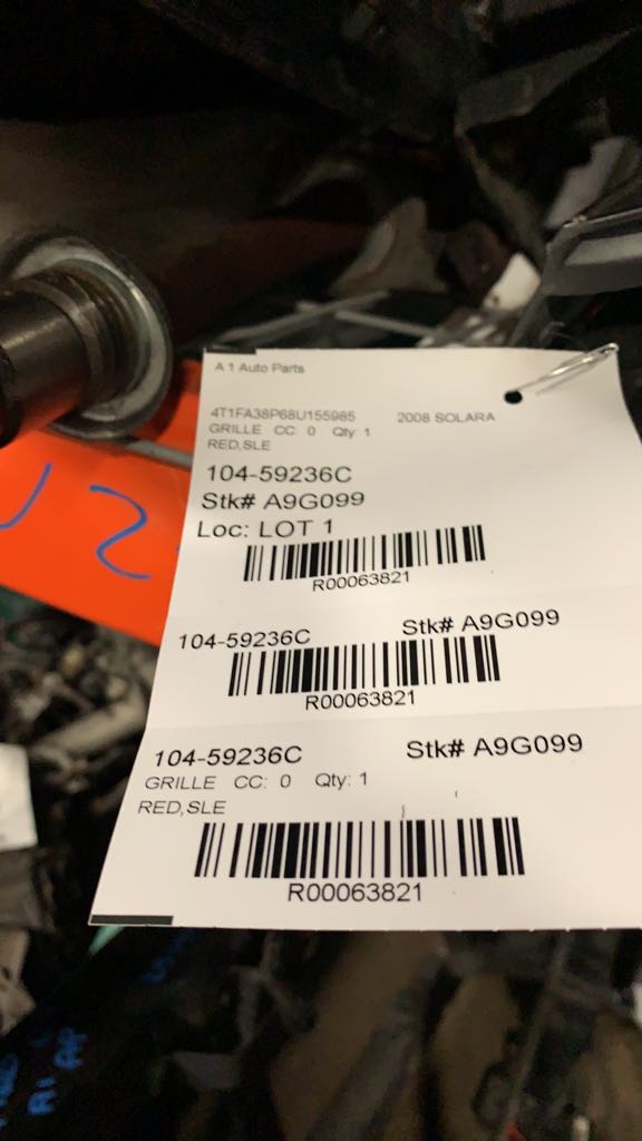 $75.00 Stock#A9G099 Inventory #: R63821 Loc:W2.12C VIN: 4T1FA38P68U155985 Milage: 90348 Source Vehicle Color: BABY BLUE Conditions/Options:,SLE Interchange Part Number:104-59236C Hollander Interchange found this part as interchangeable with: SOLARA 07-08 upper, exc. Sport model