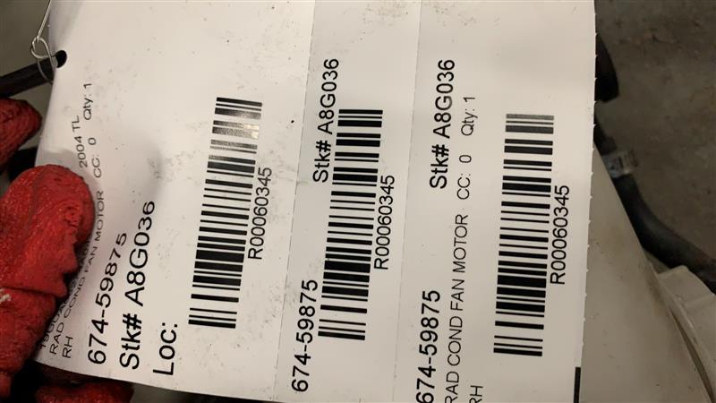 Source Vehicle Color: SILVER Conditions/Options:RH Interchange Part Number:674-59875 Hollander Interchange found this part as interchangeable with: TL 04-08 Fan Assembly; condenser