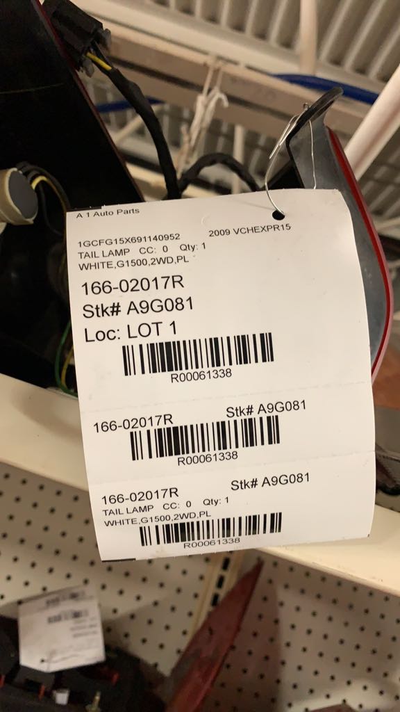 $50.00 Stock#A9G081 Inventory #: R61339 Loc:W1A.AA.8A VIN: 1GCFG15X691140952 Milage: 181634 Source Vehicle Color: WHITE Conditions/Options:WHITE,G1500TEST